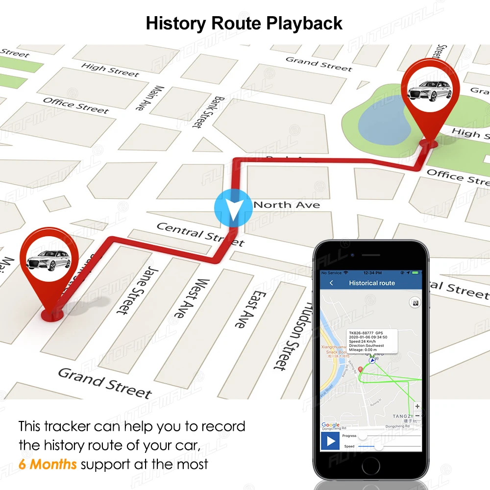 The APP and web server can record the upload data of the device up to 6 months, you will can playback the history route at any time!