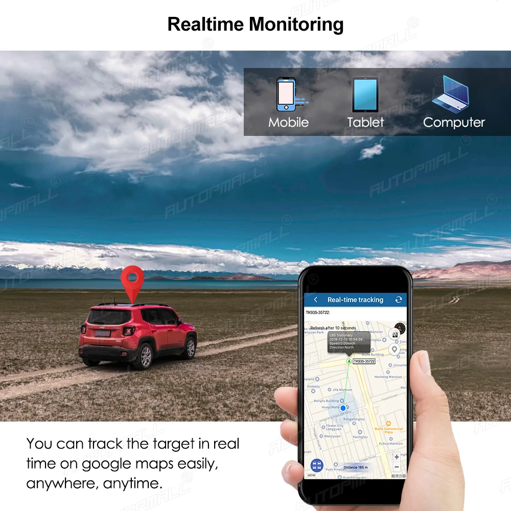 You will can realtime track the device on google maps via mobilephone, tablet and computer, and the minumum data upload interval is 10 seconds!