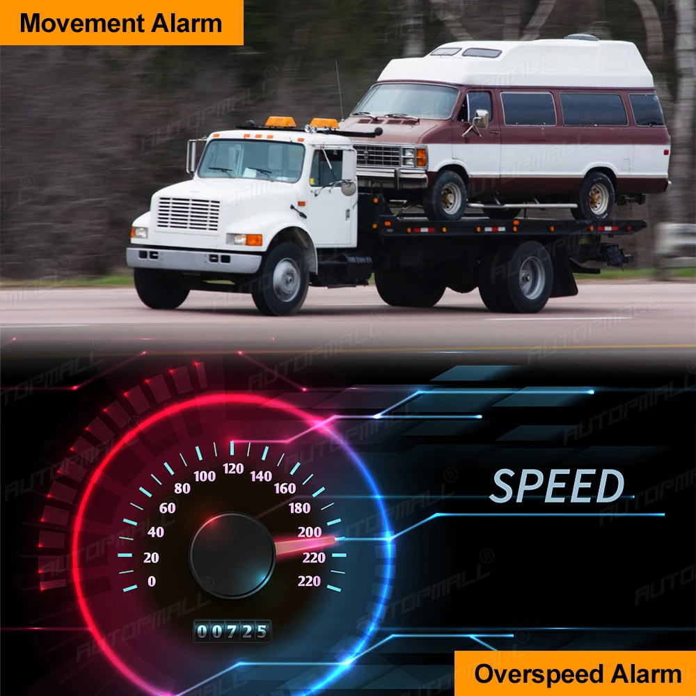 When the units stays immobile in a place for 10 minutes, the user can set up the movement alarm by this command "move+passord", then in case the device moved 500m it will send alarm SMS "Move Alarm+Latitude and longitude" to the authorized number.