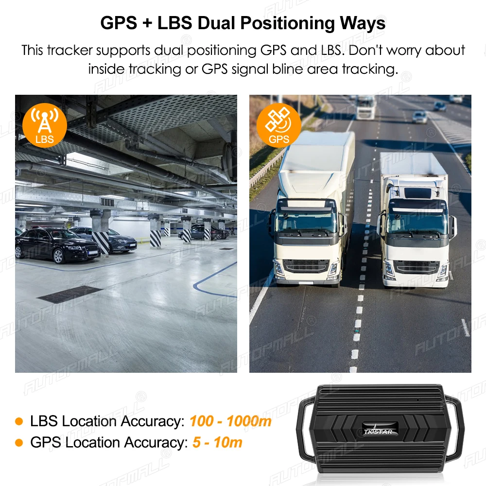 If the gps signal is good, the device will locate via gps satellite, if not, the device will locate via LBS! Under GPS locating mode, the accuracy is 5-10 meters, under LBS locating mode, the accuracy is 100-1000 meters!