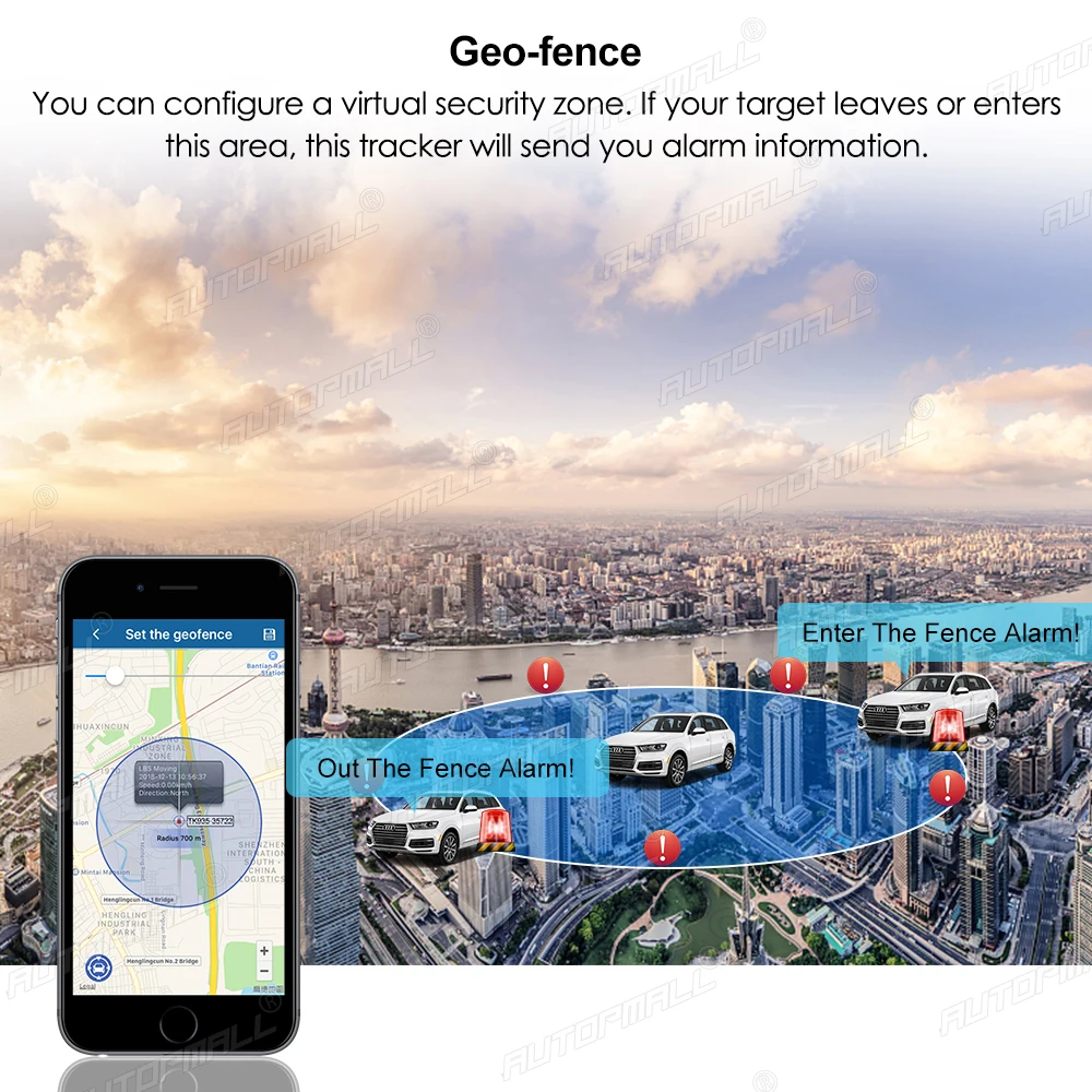 Can set up a geofence for the tracker.when entering or leaving the set area, the device will send an alarm message to the authorized number, so this is convenient for us to manage the car and has anti-theft function.